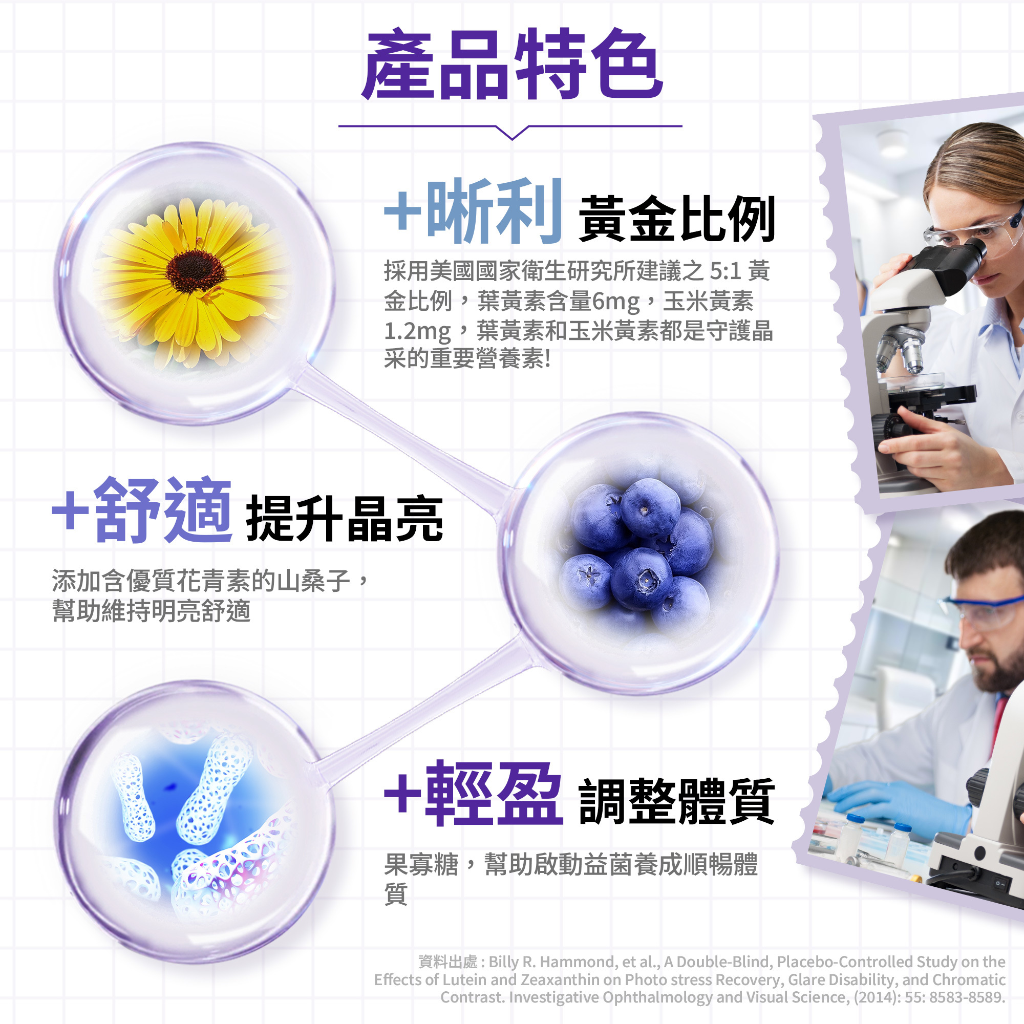 +晰利 黃金比例 : 採用葉黃素:玉米黃素 =5:1